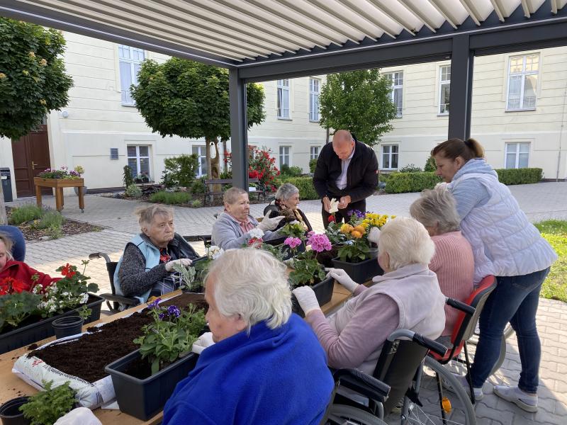 Na tento týden jsme ve spolupráci s pohřební službou Jeřábek pro naše uživatele zorganizovali příjemnou dopolední aktivitu. Počasí nám vyšlo, a tak jsme mohli jako správní zahrádkáři pracovat na čerstvém vzduchu. Sázeli jsme květiny do truhlíků a rovněž si povídali o zahradničení. Naše uživatelky odvedly kus práce. Víte, jak je to přísloví – „bez práce nejsou koláče“? Za skvěle odvedenou práci jsme si pochutnali na koláčích, které jsme rovněž dostali jako dárek. Veškerá tato spolupráce byla formou daru a opravdu si toho velmi vážíme. Jsme potěšeni, že máme okolo sebe štědré lidi. Děkujeme! Naše spolupráce tímto nekončí, máme se na co těšit!