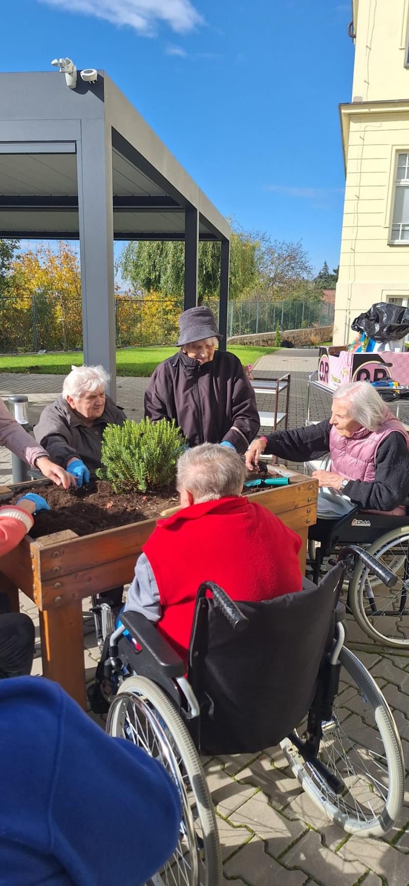 Podzim zaklepal na dveře. Nastal čas rozloučit se s letními květinami a nahradit je podzimními. Naše uživatelky se chopily práce a během několika dní osázely truhlíky, mobilní zahrádky a květináče. S naší dopomocí jim šla práce od ruky. Uživatelky si během sázení popovídaly o podzimních kytičkách, či příchozích dušičkách.