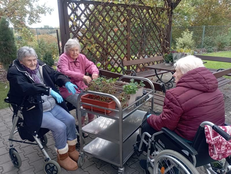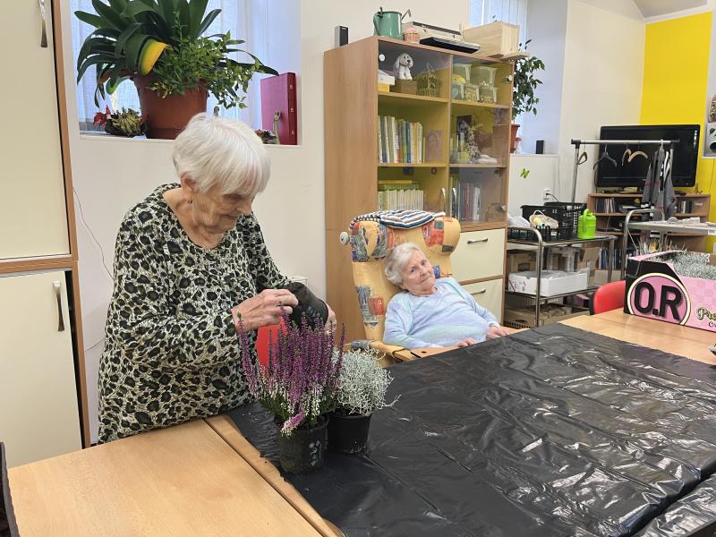 Podzim zaklepal na dveře. Nastal čas rozloučit se s letními květinami a nahradit je podzimními. Naše uživatelky se chopily práce a během několika dní osázely truhlíky, mobilní zahrádky a květináče. S naší dopomocí jim šla práce od ruky. Uživatelky si během sázení popovídaly o podzimních kytičkách, či příchozích dušičkách.