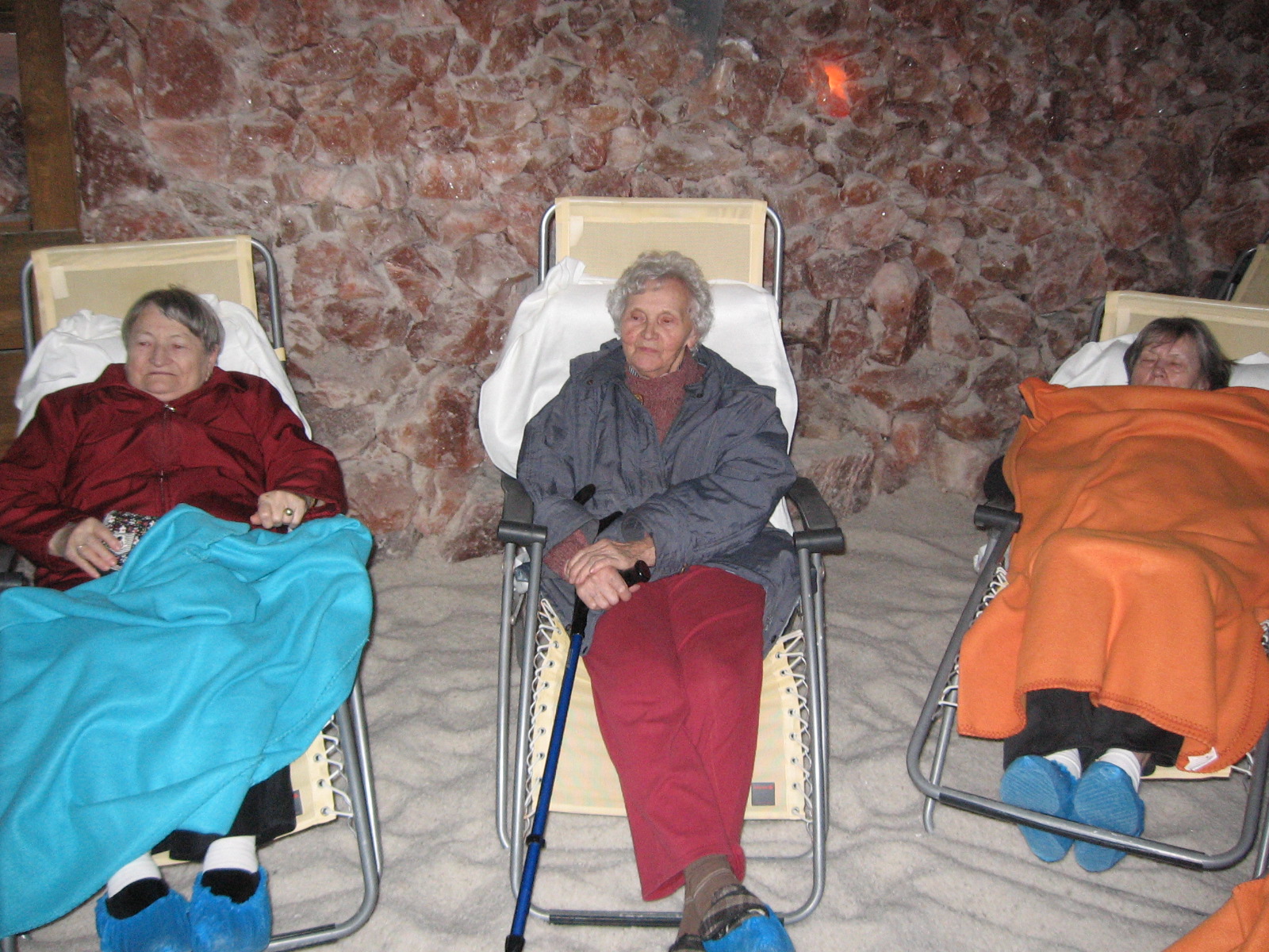 Dne 28. 8. 2014 jsme po delší doby opět navštívily Solnou jeskyni v Třemošnici. Vzhledem k omezené kapacitě se výletu zúčastnilo 7 klientek s doprovodem pracovnic sociálního úseku. Za hezkého počasí jsme cestu absolvovaly dvěma vozy domova. Cestou jsme se kochaly krásnou krajinou Železných hor. Po příjezdu na místo jsme se pohodlně usadily na lehátka, přikryly se dekami a za doprovodu příjemné hudby relaxovaly asi necelou hodinu. I přesto, že některé klientky s námi jeli poprvé, všem se hodina strávená v jeskyni líbila bez rozdílu. Návštěvu jeskyně si určitě brzy zopakujeme.