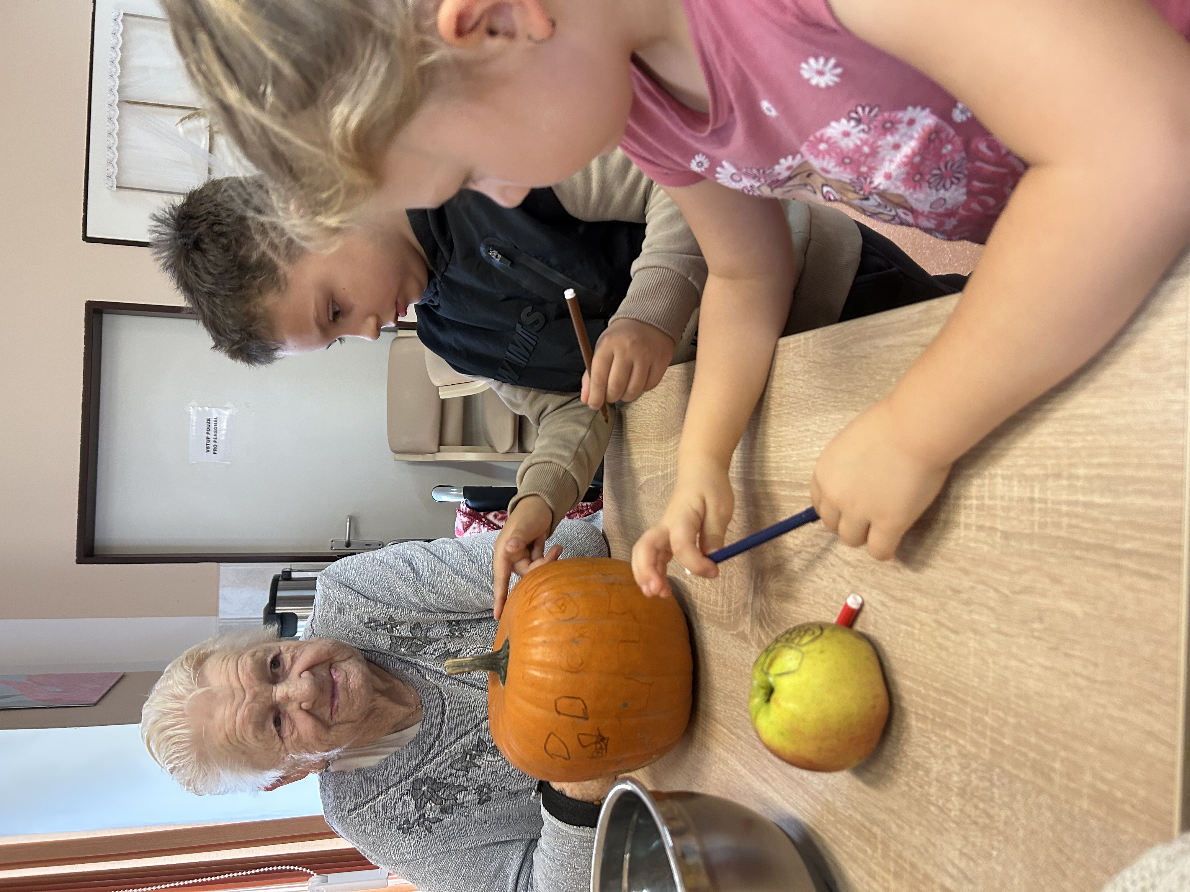 Dýňové období začalo. V minulém týdnu jsme v našem Domově přivítaly děti z MŠ Masarykova Čáslav. Spolupráce s touto školkou pokračuje již od loňska. Děti s našimi uživateli společnými silami dlabaly a dekorovaly dýně. Tato krásná mezigenerační setkávačka se vydařila a už teď se těšíme na další společnou aktivitu.