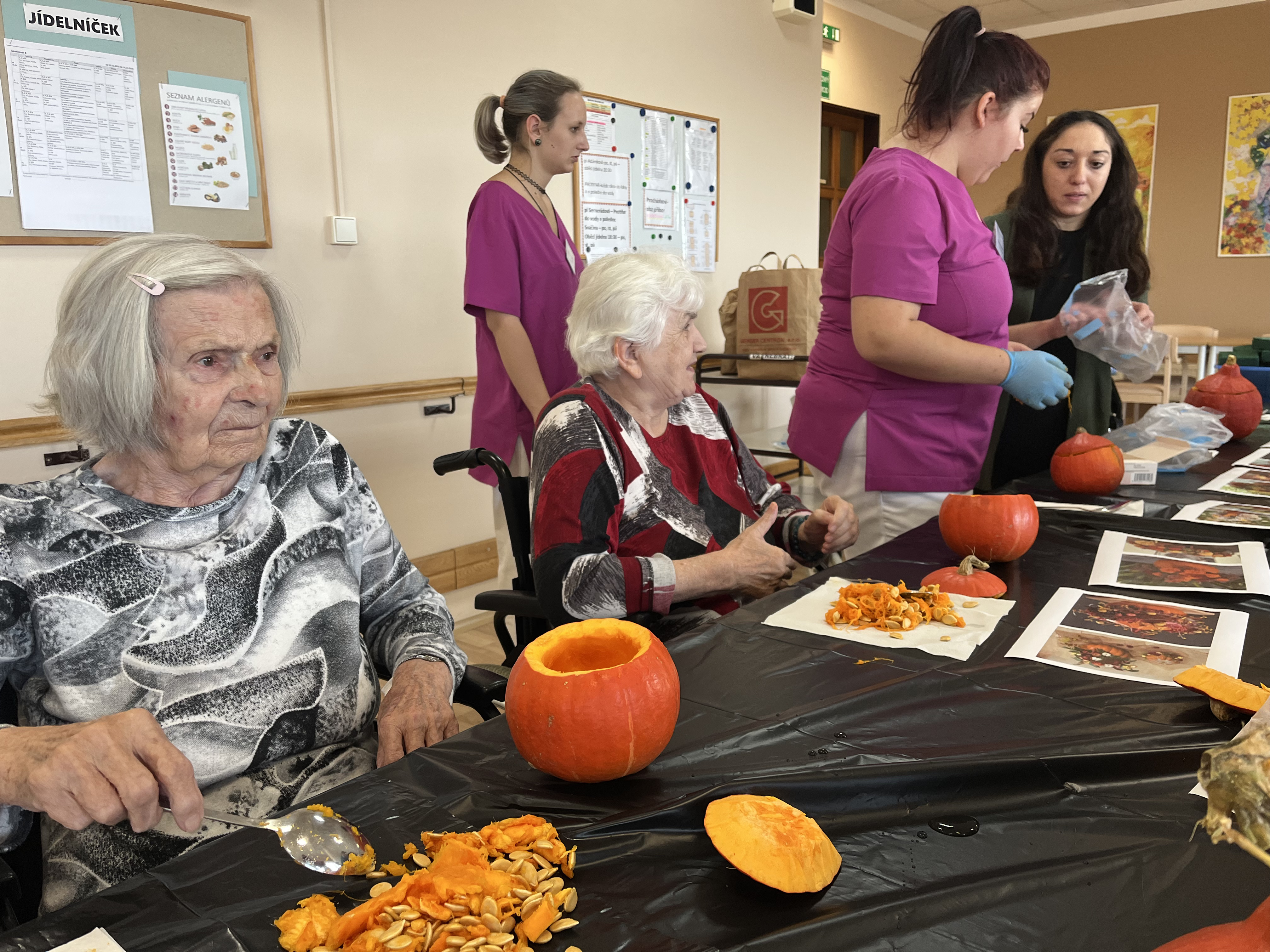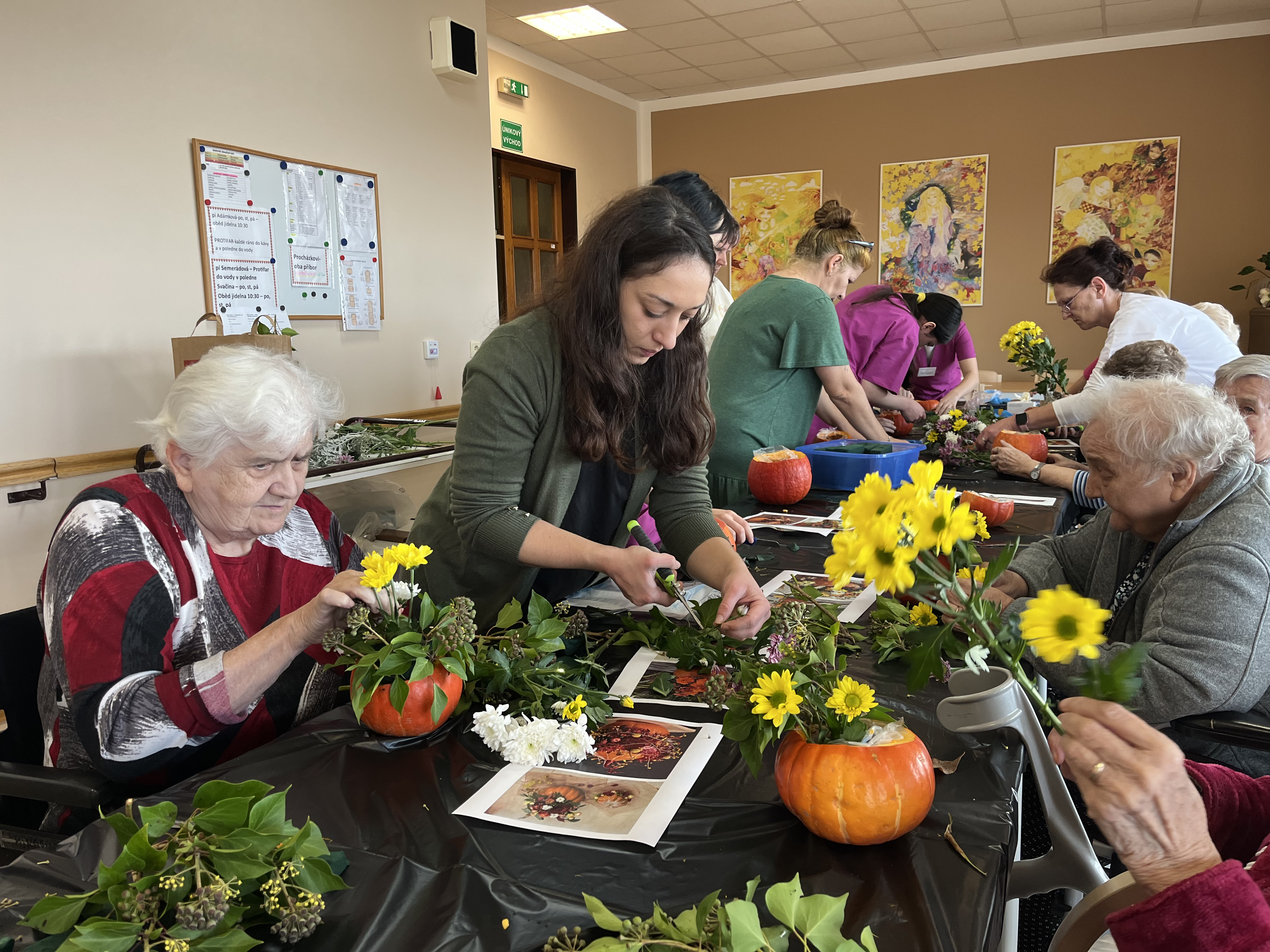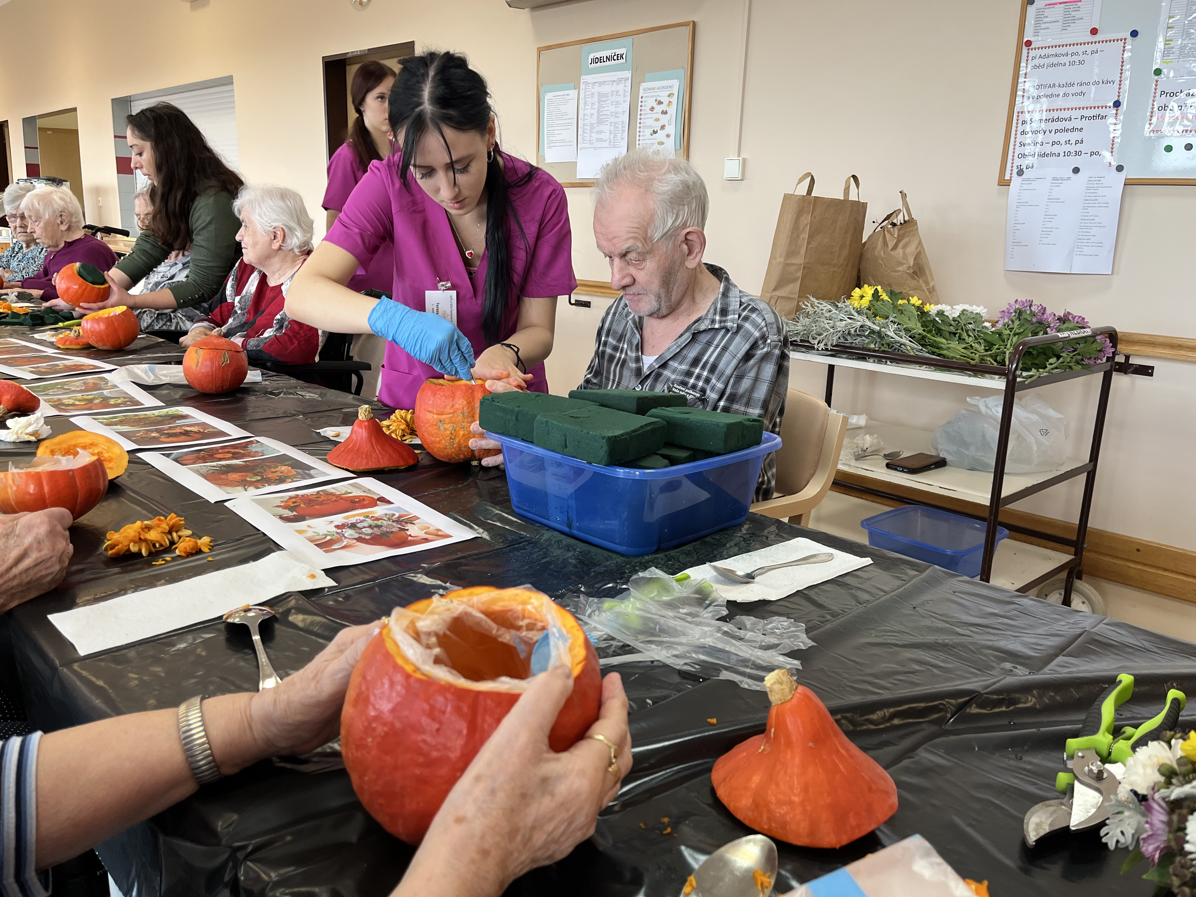 Tento měsíc jsme zahájili novou spolupráci s Městským muzeem Čáslav. Byly nám nabídnuty workshopy, při kterých si budou moct naši uživatelé vytvořit dekorace. Využili jsme hned první nabídku, a to tvoření podzimní dekorace z dýní a květin. Šikovní uživatelé s dopomocí personálu vytvořili opravdu úchvatné výrobky, které si poté odnesli na své pokoje. Děkujeme za vydařené dopoledne, které sršelo zápalem a nadšením.