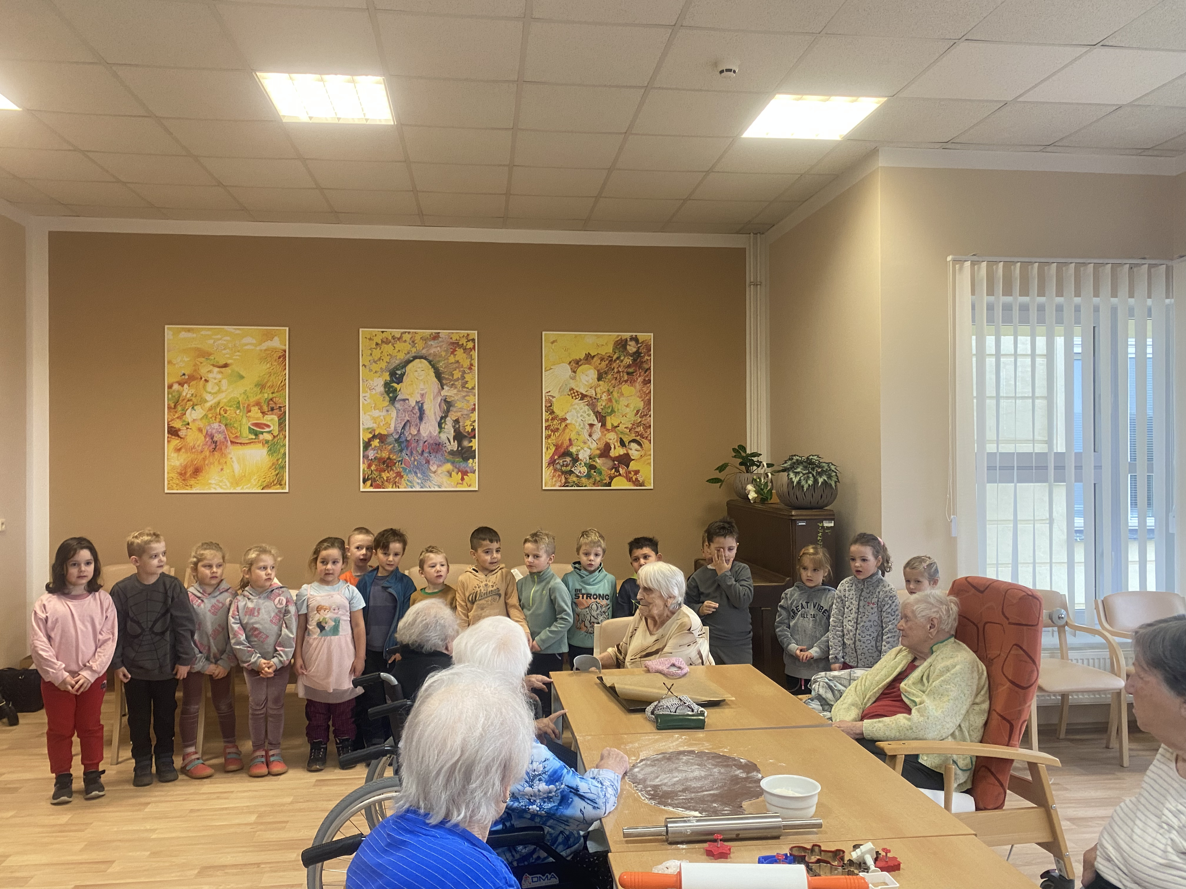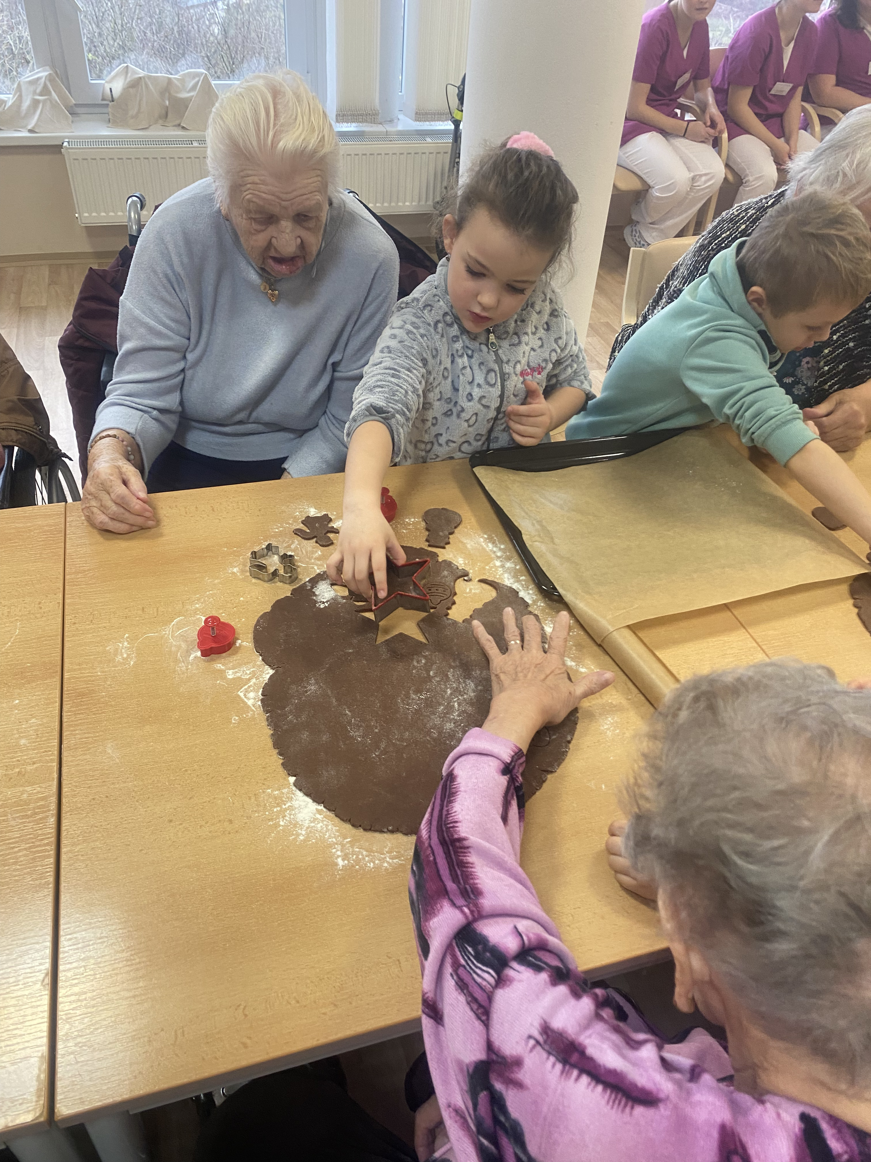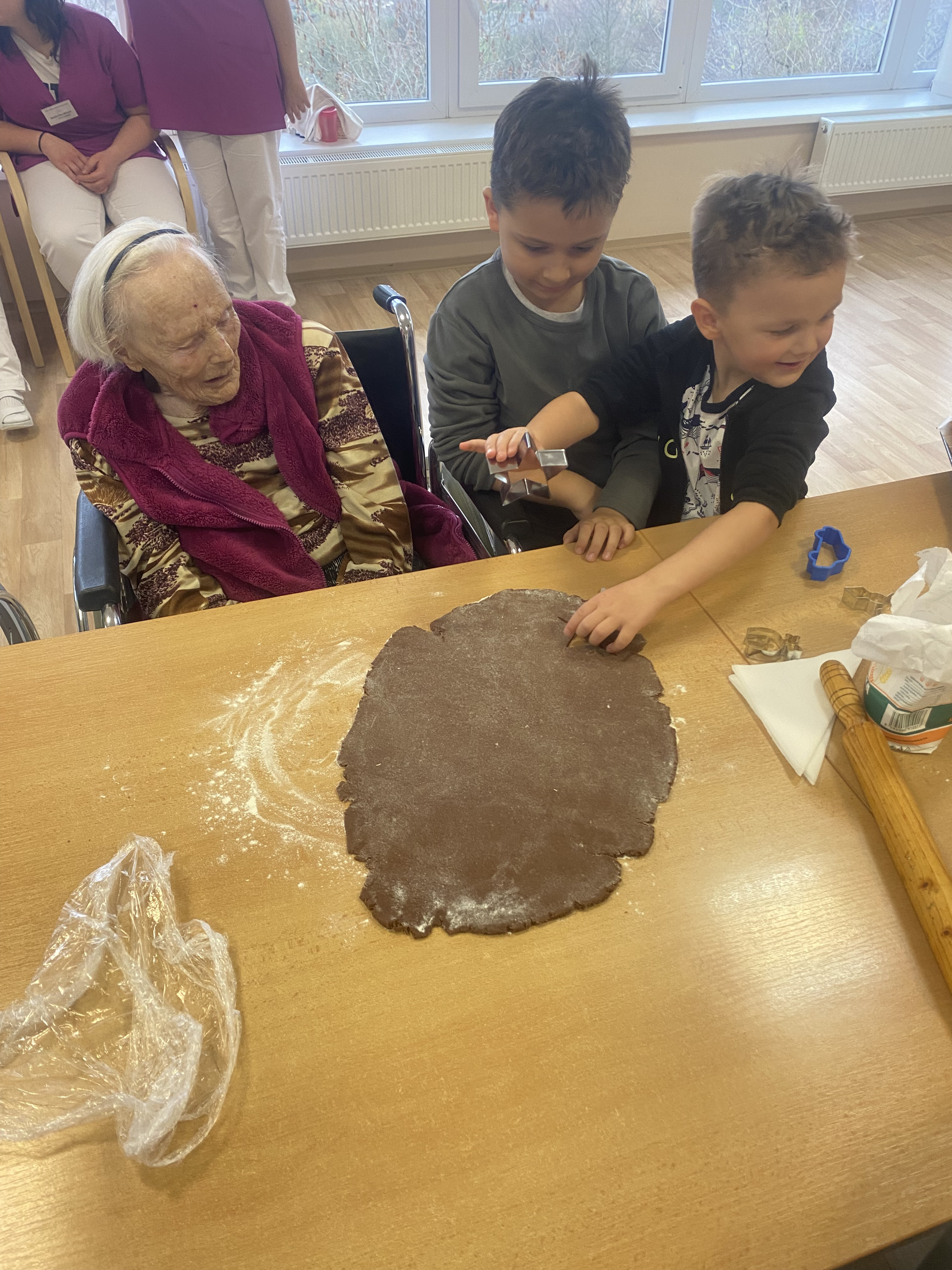 Do našeho Domova opět zavítala školka MŠ Masarykova Čáslav. Tématem setkání bylo oblíbené pečení perníčků, které těší nejen děti, ale také dospělé. Šikovné děti našim klientům také zazpívaly vánoční písničky a společně si popovídali. První advent nám pomalu klepe na dveře, a proto neztrácíme čas. Šikovným dětem a paním učitelkám děkujeme za návštěvu a těšíme se na příští setkání, při kterém budeme perníčky zdobit a těšit se z hotových výtvorů.